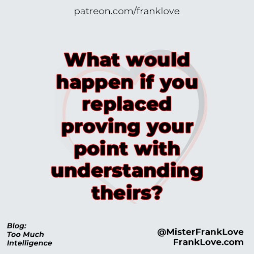 I’m not saying this hypothetical relationship is doomed. Being intelligent doesn’t mean the connection is trash. But when two very intelligent people are paired together, the communication often gets stuck in a battle of wits rather than a sharing of hearts.